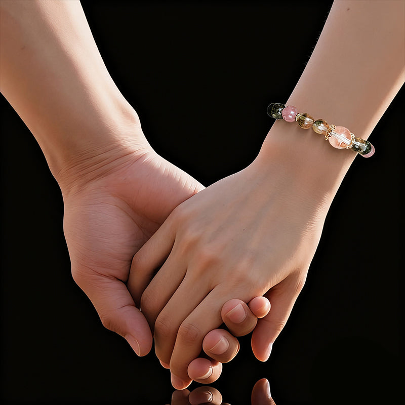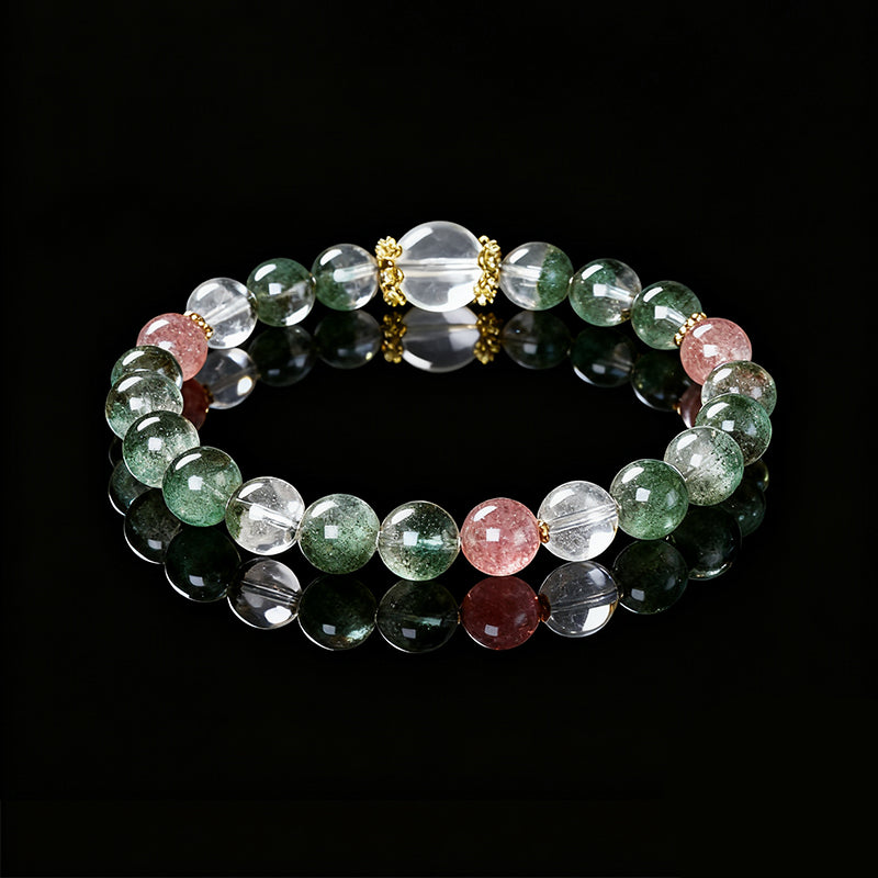Strawberry Quartz complements Green Phantom by promoting emotional balance, compassion, and clarity of mind. The bracelet fosters inner peace, calm decision-making, and harmonious relationships.