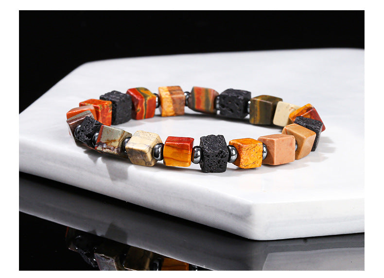Red Turquoise & Volcanic Stone Square Bracelet