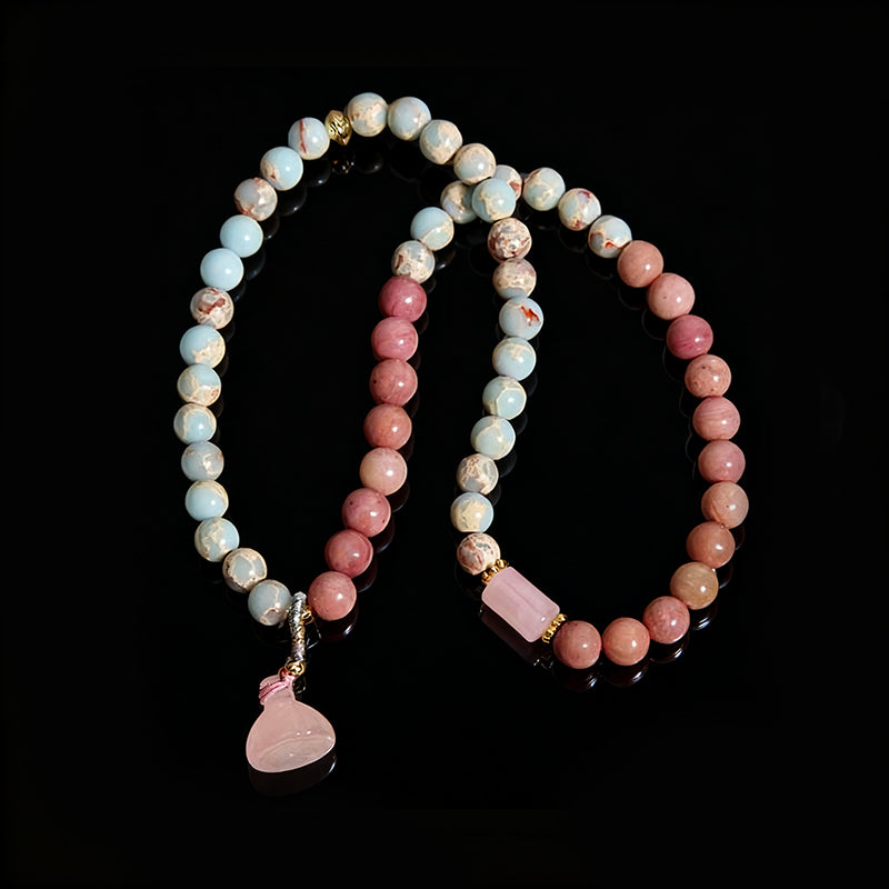 Shoushan stone is known for its gentle, grounding energy that promotes calm and inner stability. Combined with red vein stone, this double-wrap bracelet helps balance emotions and ward off negative energies, while the carved lotus pod symbolizes spiritual awakening and prosperity.