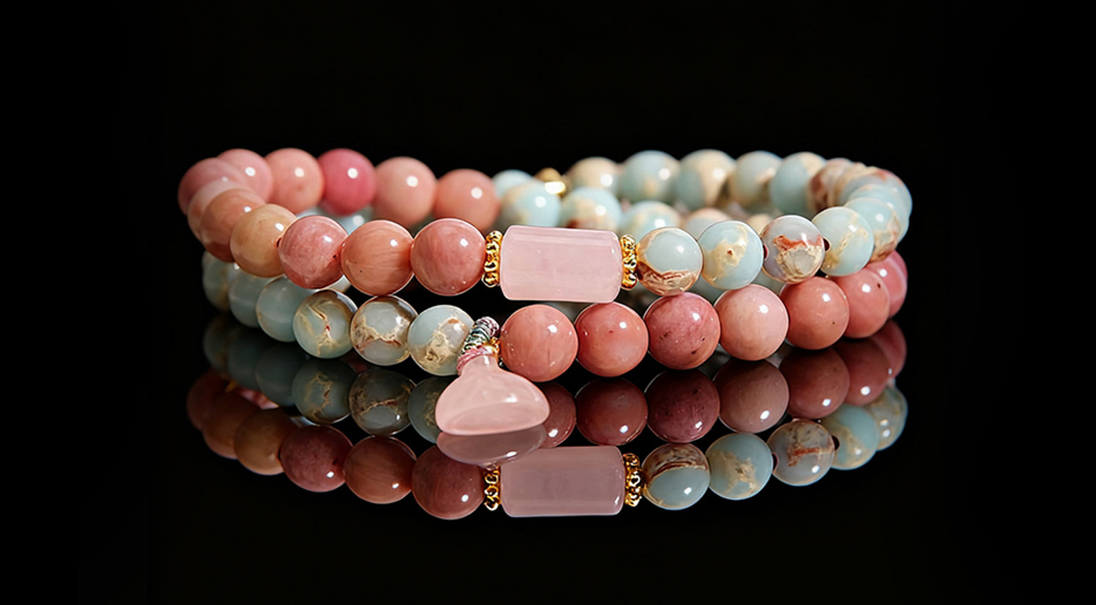 Shoushan & Red Vein Stone Double-Wrap Bracelet – Modern Luxury for Women