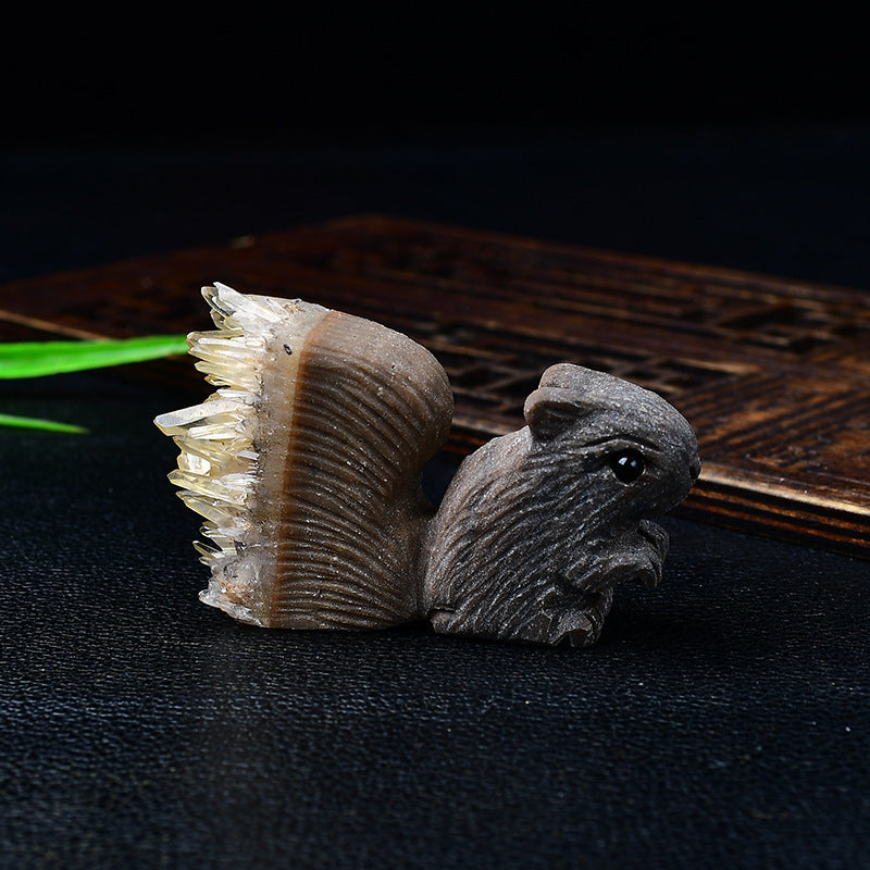 Uruguay Crystal Ornament Natural Amethyst Cluster Little Squirrel Ornament Chrysanthemum Crystal Raw Stone Carving Home Living Room